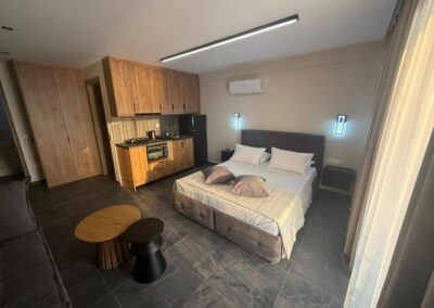 Μόλις λίγα βήματα από την ακτή, σας περιμένει ένας φιλοξενούμενος χώρος με 14 προσεγμένα διαμερίσματα, ιδανικά για οικογένειες, ζευγάρια ή παρέες. Επιλέξτε ανάμεσα σε τρίκλινα και τετράκλινα δωμάτια, όλα με ανεμπόδιστη θέα στη θάλασσα και διαμόρφωση που σέβεται την ιδιωτικότητα και την άνεσή σας.